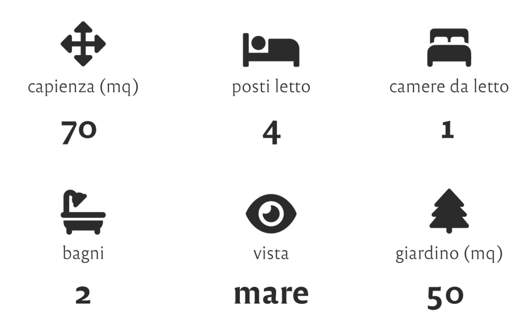 Three-room and two-room apartments all with front or side sea view, all with outdoor space, and set up with all amenities for a relaxing vacation.