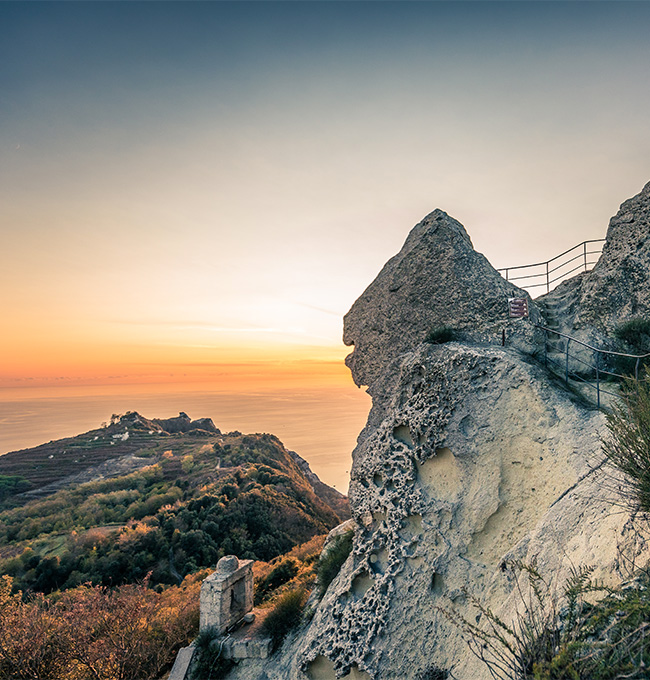 Cammineremo tra orti e vigneti a picco sul mare fino a raggiungere lo spettacolare affaccio sulla mitica baia della Sgarrupata. Proseguiamo per questo sentiero meraviglioso scavato nel tufo, tra depositi di lapilli e ceneri antiche.