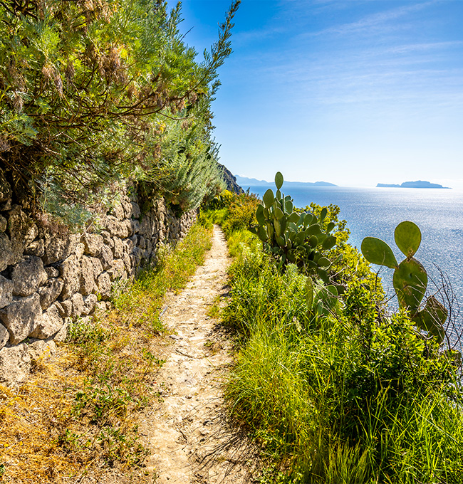 Percorrendo a ritroso il sentiero, prenderemo la deviazione per il Monte di Panza, da dove potremo ammirare un meraviglioso panorama che spazia da Capri a Sant’Angelo fino alla magica baia di Sorgeto. L’escursione terminerà in una delle cantine più belle dell’isola con un affaccio unico sulla baia, famosa per le sue vasche d’acqua calda naturale