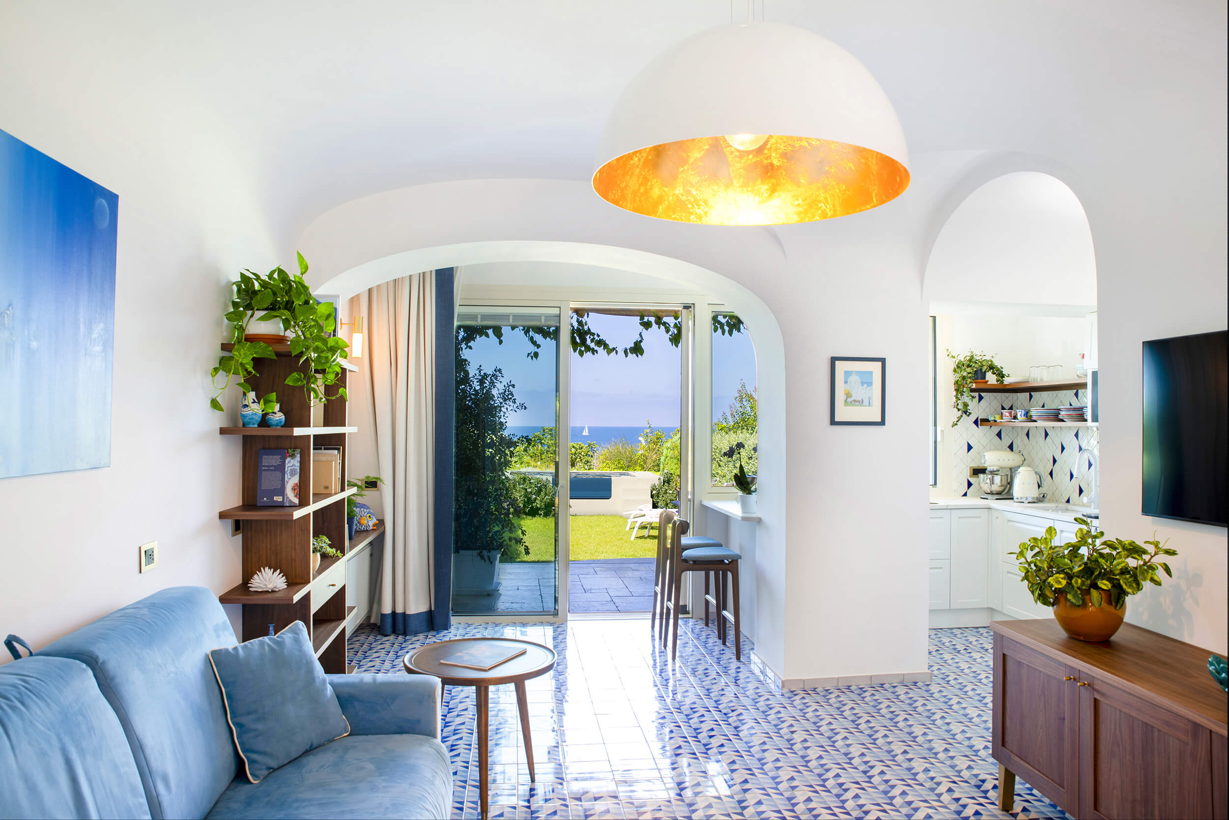 Vivi il connubio costante tra tradizione e design, lasciati sedurre dalle sue forme dolci e dal grande finestrone ad arco da cui vi sembrerà di poter toccare il mare.